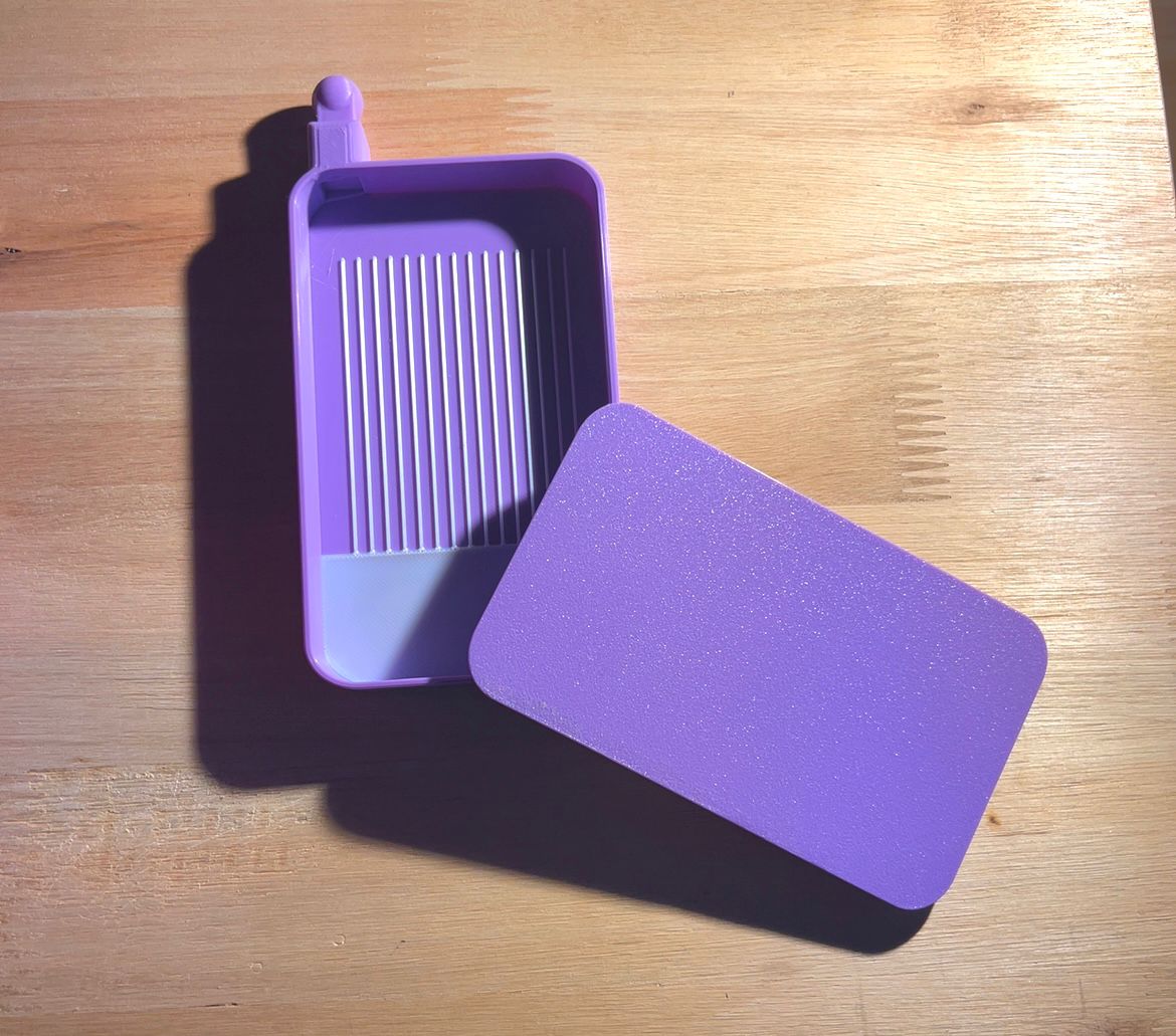 Incluye una tapa práctica que protege las piezas y permite transportarla o pausarla sin preocuparte por desordenar tu área de trabajo. Su vertedor lateral con borde redondeado facilita el vaciado sin pérdidas, ideal para sesiones continuas.
